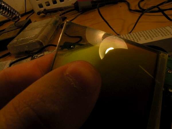 OK, you now have a modified LCD consisting of a front polarized film and two sandwiched pieces of glass with liquid crystal between them. Now to replace your reflective film (and perhaps your rear polarized film too) with a light source! Underneath the glass panel are numerous pointy metal bits sticking out from the PCB. These are legs, or, to put it another way, these metal legs are left over from when the components were soldered onto the printed circuit board. Flip your board over and you'll see what I mean. Those legs correspond to resistors, capacitors, and the like. Anyways, if you leave them like that, they may cause PRESSURE POINTS once you've closed your unit up. The 3mm modules are a bit more prone to this issue, as they're thicker, but you will even see this from time to time on a 1.5mm module if you don't trim them down!